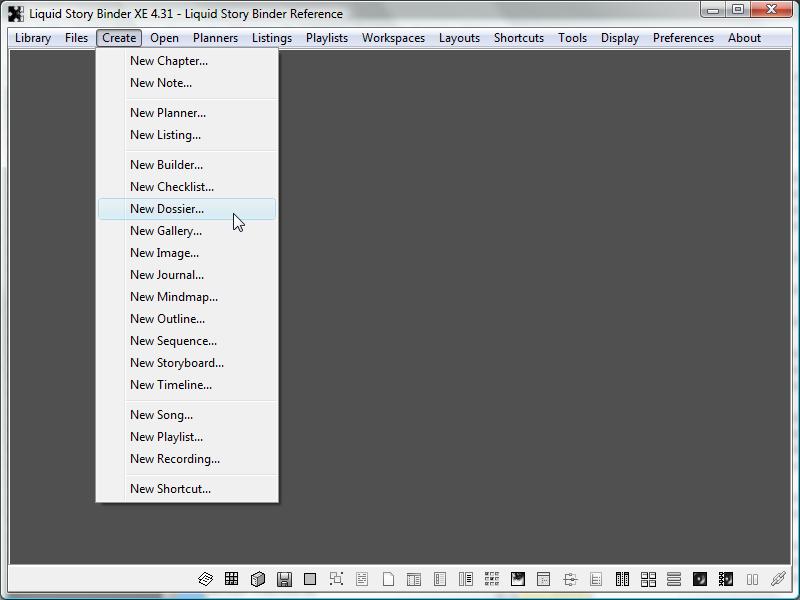 To create a new Dossier, choose 'New Dossier' from the main 'Create' menu.