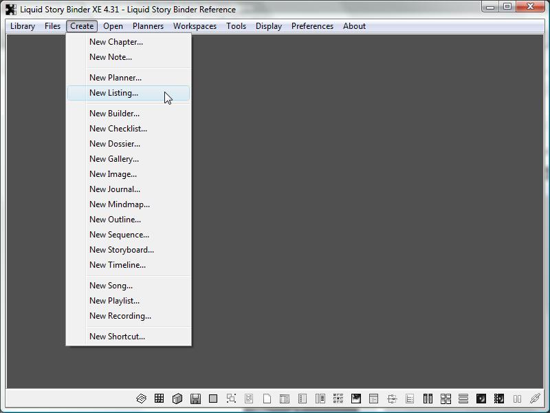 From the main window, select 'New Listing...' from the 'Create' menu.