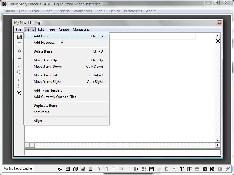 Choose 'Add Files' from the 'Items' menu to begin adding your existing documents.