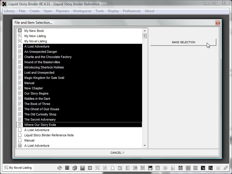 The 'File and Item Selection' dialog will open. Select the documents you wish to include in your new Listing, and click the 'Make Selection' button.