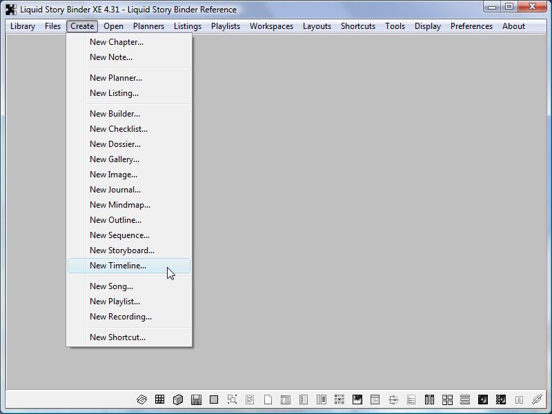 To create a new Timeline, choose 'New Timeline' from the main 'Create' menu.