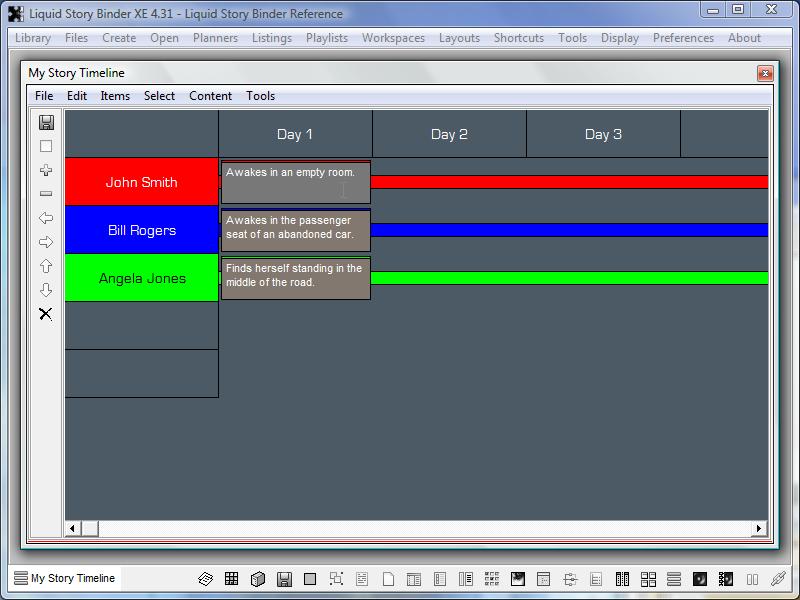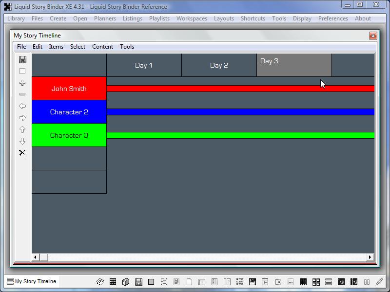 A single timeline card can be used to cover multiple days or instances. This is useful if your one of characters is stuck in one place, doing the same thing over a long period of time. Click the 'Extend Items' icon to stretch selected cards.